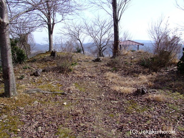 標高408mの山から西に張り出して再び高くなった標高370mの山頂に築かれ、山頂の曲輪にはh形になった土塁または櫓台とも云われる盛り上がりがある。