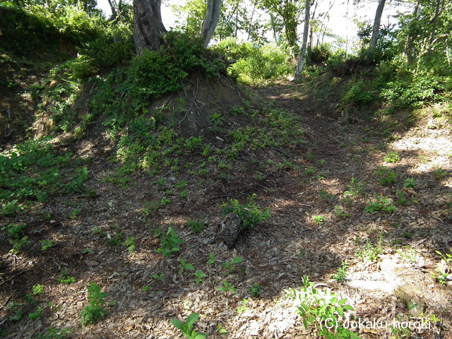 186:虎口の南側にある土塁と横堀のある通路